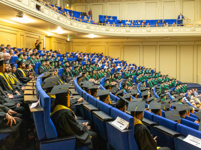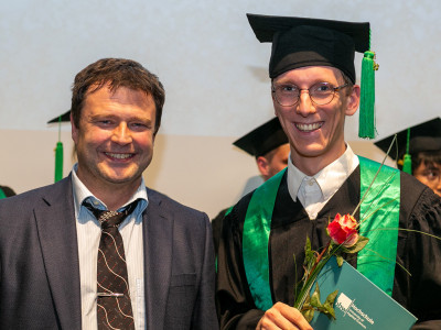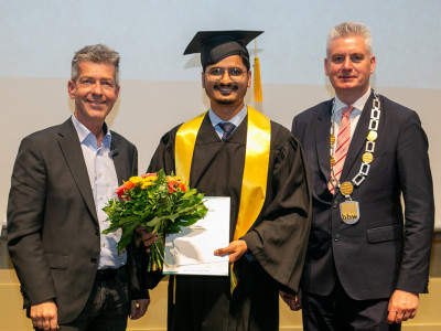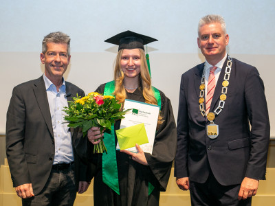 Initially, the graduates gathered in the dressing room to don their festive robes. Two hours later, the much-anticipated event commenced: the graduation ceremony, undoubtedly the most significant event in a student's life. Ursula Schwill, Chancellor of bbw University, warmly welcomed all present graduates, their friends and family members, as well as all other guests, and officially opened the event. During his laudatory speech, Prof. Dr.-Ing. Hafer, Rector of bbw University, addressed motivating words to the graduates: "Now you are academics - that is a big word - and even though the current numbers of academics are increasing, academics are still a selected minority in the entirety of our population - at least in Germany."
