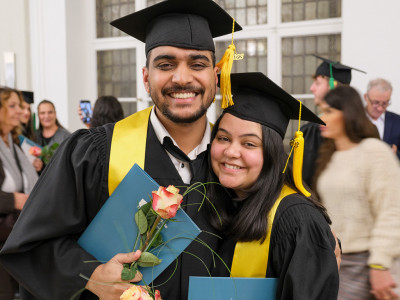 Before the graduates could raise a toast to their accomplishments alongside their families, friends, professors, and staff of bbw University, the traditional cap-tossing ceremony took place. We congratulate all graduates warmly on their achievement!Ceremonial graduation: graduates of the bbw University of Applied Sciences receive their certificates