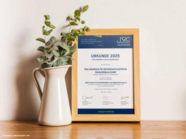 Die bbw Hochschule freut sich, bekannt zu geben, dass sie seit Anfang dieses Jahres Mitglied des JARO Instituts für Nachhaltigkeit & Digitalisierung e.V. ist. In diesem Zuge hat die Hochschule auch eine enge Partnerschaft mit dem JARO Institut, unter der Leitung von Frau Yvonne Jamal, etabliert. Dieser Schritt stärkt die strategische Ausrichtung der bbw Hochschule, Nachhaltigkeit und Digitalisierung aktiv voranzutreiben.