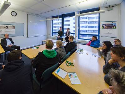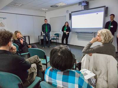 Im November 2019 hatte die bbw Hochschule eine Studiengruppe der Irup Regional Institute University aus Saint-Étienne, Frankreich, bei sich zu Gast. Im Rahmen ihrer Studienreise haben die Austauschstudierenden an einer Projektarbeit zum Thema "Business Model for 3D Printing" erfolgreich teilgenommen. Außerdem haben sie ein vielfältiges Angebot von Vorlesungen, zu den Themen Technologie, Innovationsmanagement und Digitalisierung besucht. Die Vorlesungen standen immer in Bezug der Projektarbeit, um die Studierenden entsprechend vorzubereiten. Am Ende ihrer Reise konnten sich alle Teilnehmer:innen über das Ergebnis ihrer Projektarbeit freuen und erhielten im feierlichen Rahmen ein Teilnahmezertifikat, welches von Prof. Kaschka überreicht wurde.